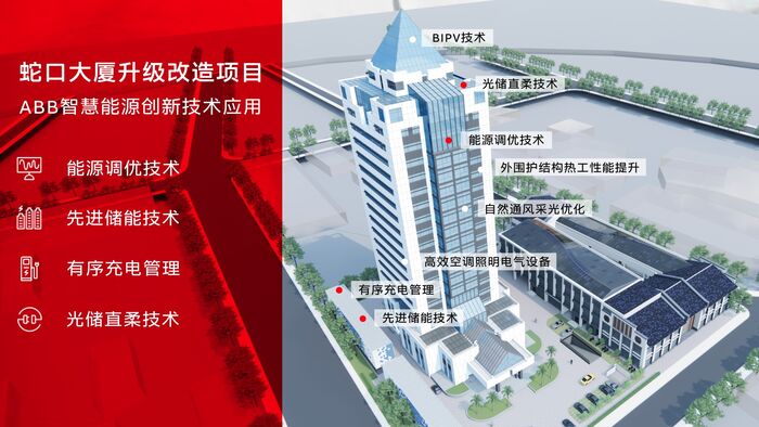 在現(xiàn)有建筑的升級(jí)上,ABB同樣穩(wěn)步推進(jìn)——應(yīng)用ABB智慧能源創(chuàng)新技術(shù)的深圳蛇口大廈改造成為近零碳排放建筑試點(diǎn)示范項(xiàng)目,項(xiàng)目中應(yīng)用了ABB ZEE600智慧能源管理系統(tǒng)、eStorage智慧儲(chǔ)能小屋及EVinn TA充電樁,通過(guò)源荷儲(chǔ)的精準(zhǔn)調(diào)控實(shí)現(xiàn)光伏消納及負(fù)荷的優(yōu)化調(diào)控節(jié)能減碳。