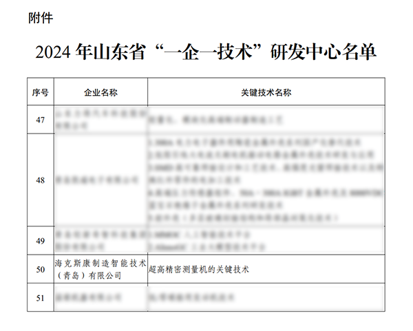 近日,山東省工業(yè)和信息化廳公布了2024年山東省“一企一技術(shù)”研發(fā)中心名單,??怂箍抵圃熘悄芗夹g(shù)(青島)有限公司憑借“超高精密測(cè)量機(jī)的關(guān)鍵技術(shù)”成功入圍,本次認(rèn)定是對(duì)??怂箍登把販y(cè)量技術(shù)及研發(fā)創(chuàng)新綜合實(shí)力的高度認(rèn)可。