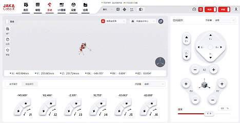 Coboπ的可視化設(shè)計(jì),幫助客戶在操作頁面遠(yuǎn)程觀測各項(xiàng)實(shí)時(shí)數(shù)據(jù),機(jī)器人運(yùn)行模式、控制柜&機(jī)械臂溫度功率、當(dāng)前連接設(shè)備以及關(guān)鍵設(shè)備信息等參數(shù)一眼即獲,操作極簡易,管理極順暢。此外,用戶可選配JAKA OTA服務(wù),云端協(xié)同管理,深入工廠大數(shù)據(jù)和信息化管理。
