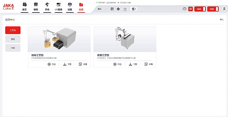 為了更精準(zhǔn)地服務(wù)于客戶的應(yīng)用場景,我們精心打造了節(jié)卡應(yīng)用中心。這一平臺不僅支持應(yīng)用包方案便捷的上傳共享以及一鍵下載開箱即用的功能,還特別引入了創(chuàng)新的碼垛工藝包、焊接工藝包,以及LensX高級視覺應(yīng)用模塊,推動行業(yè)效率革新。
