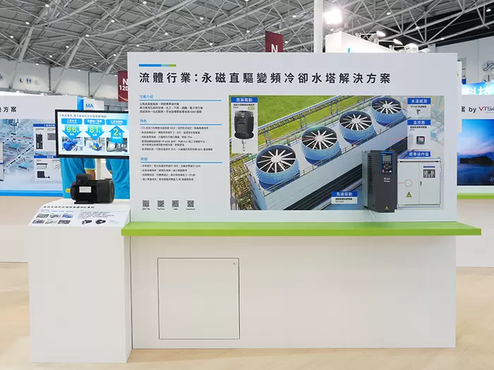 以IE5等級高扭力、低轉(zhuǎn)速永磁電機(jī)直驅(qū)風(fēng)扇,節(jié)省減速機(jī)設(shè)計(jì),傳動效率提升5%~10%,有效提高水塔風(fēng)量。相較傳統(tǒng)感應(yīng)電機(jī),部分負(fù)載效率提升約59%,全載效率提升約20%,方案并大幅降低可運(yùn)行轉(zhuǎn)速,可再節(jié)能達(dá)約10%。