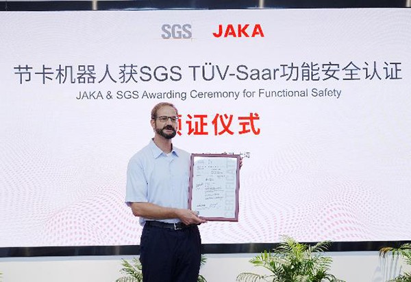 SGS全球產(chǎn)品認(rèn)證簽證官M(fèi)ark Lohmann表示:“JAKA是國內(nèi)第一家基于2023年最新版標(biāo)準(zhǔn)獲得SGS TÜV Saar功能認(rèn)證的協(xié)作機(jī)器人企業(yè)。這一證書是節(jié)卡機(jī)器人的全球通行證,象征著節(jié)卡機(jī)器人已達(dá)全球前沿水平,有能力為客戶提供技術(shù)一流的高質(zhì)量機(jī)器人產(chǎn)品。”