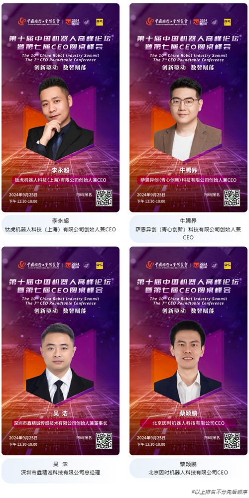 嘉賓揭秘——第十屆中國(guó)機(jī)器人高峰論壇暨第七屆CEO圓桌峰會(huì)火熱報(bào)名中!