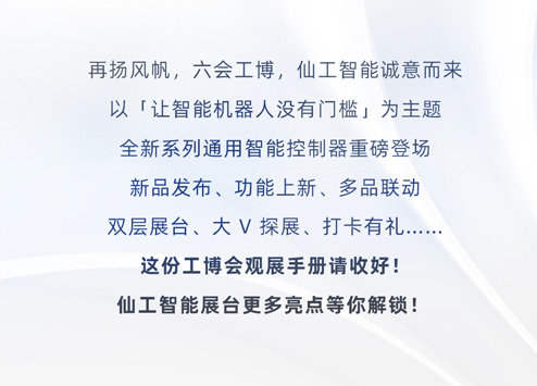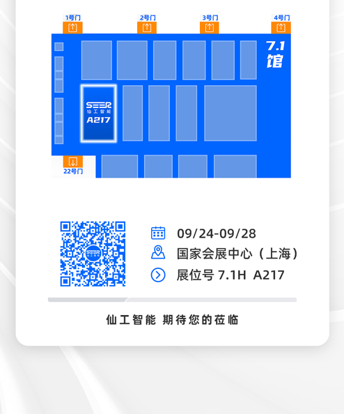 9 月 24 日,讓我們相聚 7.1H A217 仙工智能展位,看見(jiàn)智能機(jī)器人的 X 種可能。