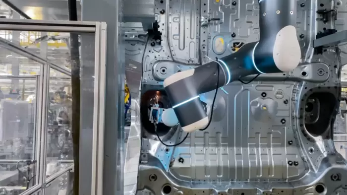在汽車焊接后處理打磨方面,非夕提供的自適應(yīng)方案可以做到快速部署、高效換型,調(diào)試與換型周期同比可以減少50%以上。由于自適應(yīng)機(jī)器人具備全七軸力控,高力控精度結(jié)合高頻響,使得單次焊渣去除率可以達(dá)到99%以上。此外,非夕的機(jī)械手臂是輕量化設(shè)計,占地面積小,布局靈活緊湊,同比縮小40%以上。