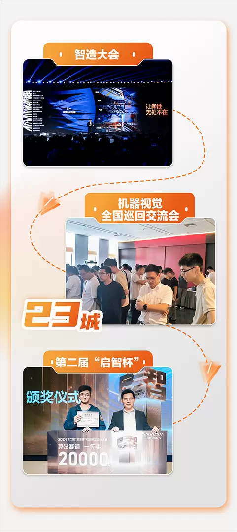 2024年,??禉C(jī)器人智造大會拉開生態(tài)建設(shè)帷幕,眾多行業(yè)領(lǐng)袖、專家學(xué)者齊聚一堂,共同探討前沿科技趨勢;機(jī)器視覺全國巡回交流會在23個城市接力,行業(yè)上下游合作伙伴共話智造;啟智杯深化產(chǎn)教融合,為行業(yè)培育創(chuàng)新人才。