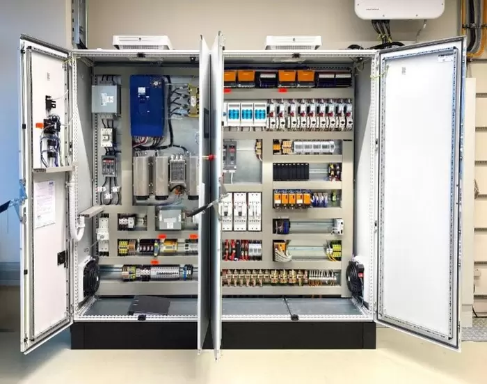 該項(xiàng)目的一個(gè)核心要素是要將光伏系統(tǒng)、儲(chǔ)能系統(tǒng)和電動(dòng)汽車(chē)等大功率設(shè)備直接集成到直流母線中。為實(shí)現(xiàn)這種集成,在現(xiàn)場(chǎng)安裝了兩個(gè)特殊的控制柜:一個(gè)用于交流輸入和交/直流整流。該控制柜對(duì)能源供應(yīng)商提供的交流電進(jìn)行濾波和整流,以輸出純凈的直流電并處理應(yīng)用電流(共模)。第二個(gè)控制柜則負(fù)責(zé)系統(tǒng)內(nèi)部的電力分配。