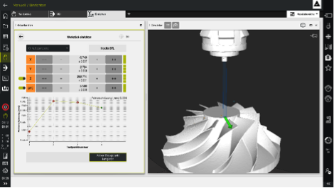 用戶使用此虛擬輔助功能可快速、友好和可靠探測(cè)位置,包括探測(cè)夾具和工件毛坯,且與設(shè)置的復(fù)雜性無(wú)關(guān)。無(wú)論是簡(jiǎn)單工件還是復(fù)雜、已加工的工件,或塔式夾具,TNC7的交互式操作向?qū)Ф寄軒椭僮鲉T一步一步完成全部設(shè)置操作。對(duì)于復(fù)雜工件,可以顯著加快設(shè)置操作速度,優(yōu)于傳統(tǒng)探測(cè)循環(huán),速度快5倍。對(duì)于夾具,6D位置探測(cè)功能是增強(qiáng)型的動(dòng)態(tài)碰撞監(jiān)測(cè)(DCM)功能的一部分。對(duì)于工件,可用全新模型輔助設(shè)置(MAS)選裝項(xiàng)設(shè)置。