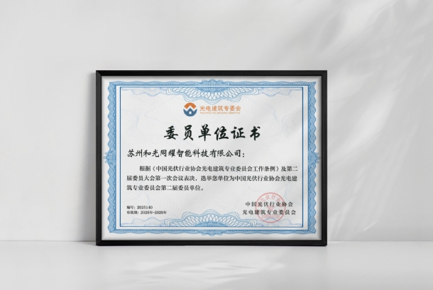 中國光伏協(xié)會(huì)光電建筑專業(yè)委員會(huì),作為專注于開展光電建筑產(chǎn)業(yè)技術(shù)研究的引領(lǐng)者,致力于推動(dòng)行業(yè)技術(shù)進(jìn)步與標(biāo)準(zhǔn)化發(fā)展。和光同耀很榮幸加入中國光伏協(xié)會(huì)光電建筑專業(yè)委員會(huì),成為其第二屆委員單位,這不僅是對我們在光伏領(lǐng)域技術(shù)實(shí)力與行業(yè)貢獻(xiàn)的認(rèn)可,也意味著我們將承擔(dān)更多推動(dòng)行業(yè)智能化、標(biāo)準(zhǔn)化發(fā)展的責(zé)任。未來,和光同耀將積極參與行業(yè)研究與合作,為光電建筑行業(yè)的創(chuàng)新與可持續(xù)發(fā)展貢獻(xiàn)力量。