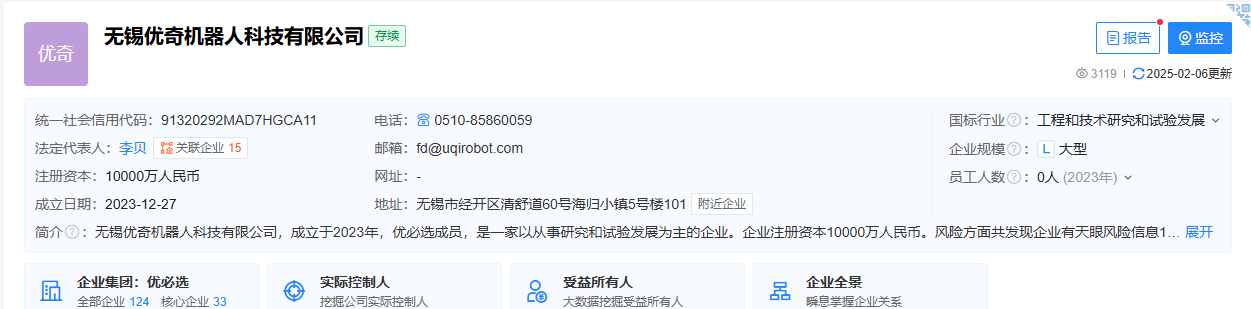 同年12月,雙方攜手成立的合資公司——無錫優(yōu)奇機器人科技有限公司(以下簡稱“優(yōu)奇機器人”),順利完成工商登記注冊手續(xù)。