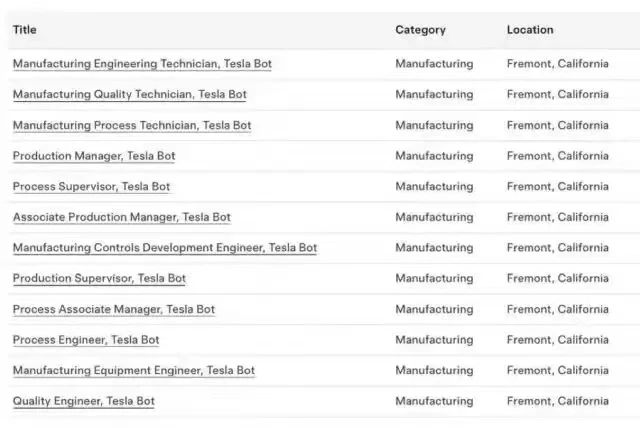 2月初,特斯拉位于美國弗里蒙特的工廠發(fā)布了多個工程崗位的招聘信息,其中至少有12個與人形機(jī)器人Optimus項目相關(guān)。這標(biāo)志著:特斯拉已經(jīng)下場,加速推進(jìn)人形機(jī)器人Optimus的量產(chǎn)化進(jìn)程。