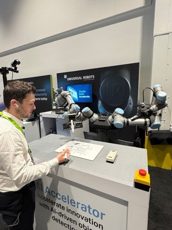 3D Infotech——動(dòng)態(tài)計(jì)量:在NVIDIA GTC上,泰瑞達(dá)展示了 UR3e 協(xié)作機(jī)器人,它能夠掃描工件并與 CAD 模型進(jìn)行比對(duì),將尺寸偏差通過投影直觀地顯示在工件表面。借助優(yōu)傲AI 加速器,協(xié)作機(jī)器人的感知能力得到顯著提升,從而能夠更精準(zhǔn)地定位工件,確保檢查的準(zhǔn)確性。
