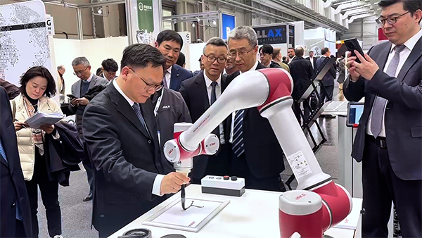 2025年3月31日,2025德國漢諾威工業(yè)博覽會開幕,全球企業(yè)和行業(yè)領(lǐng)袖聚焦智能制造領(lǐng)域,共探發(fā)展趨勢與創(chuàng)新路徑。展會期間,上海市委常委、副市長華源率上海市經(jīng)濟(jì)和信息化委員會副主任湯文侃等組成的政府代表團(tuán),前往節(jié)卡機(jī)器人展臺參觀指導(dǎo),了解企業(yè)前沿技術(shù)成果與全球化布局情況,為推動上海相關(guān)產(chǎn)業(yè)發(fā)展展開調(diào)研。