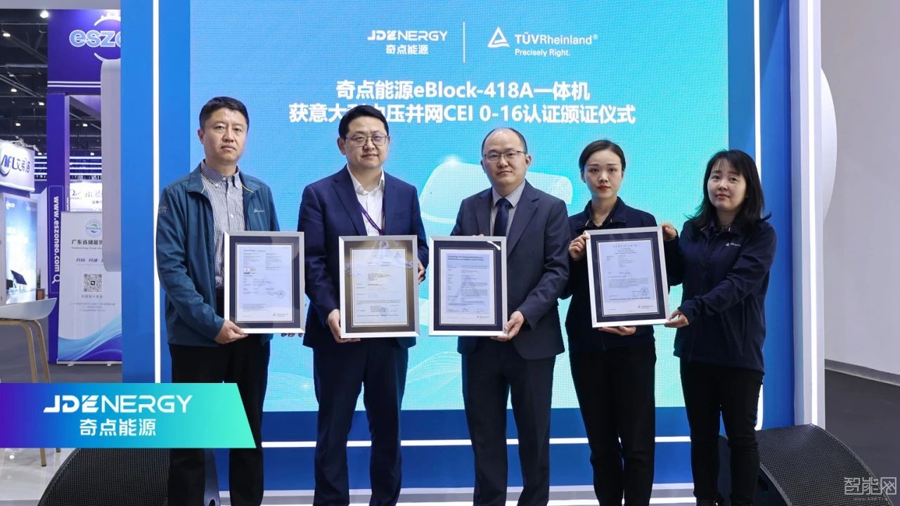 展會期間,奇點能源一舉斬獲TÜV萊茵頒發(fā)的四項權(quán)威認(rèn)證,包括PCS儲能變流器IEC/EN 62477-1型式認(rèn)證、CE-EMC認(rèn)證,以及eBlock-418A的德國VDE 4110與意大利CEI 0-16并網(wǎng)認(rèn)證。研發(fā)中心總經(jīng)理張翼強調(diào),認(rèn)證標(biāo)志著產(chǎn)品安全性與性能獲國際認(rèn)可,為拓展歐美高端市場鋪平道路。目前,其模塊化儲能系統(tǒng)已批量應(yīng)用于歐洲儲能項目,并計劃在海外建廠,深化本地化服務(wù)能力。“認(rèn)證不是終點,而是全球信任的起點。”張翼表示。