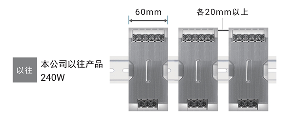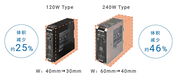 緊湊的外觀設(shè)計(jì),120W機(jī)型寬度僅30mm,240W機(jī)型寬度40mm,體積分別減少27.5%和47.9%。