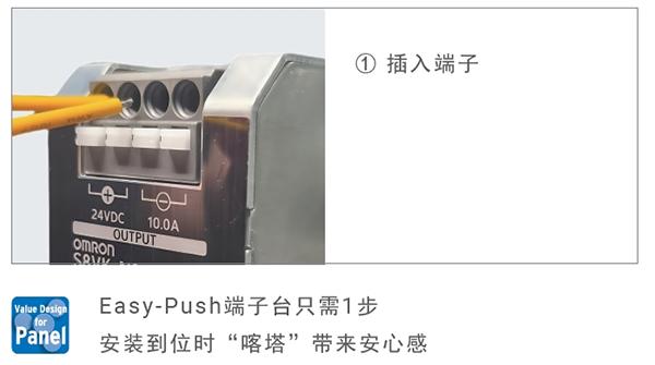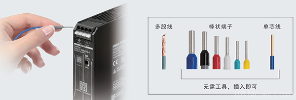 S8VK-N是歐姆龍首款搭載Easy-Push端子的產(chǎn)品。除了傳統(tǒng)的螺絲端子以外,S8VK-N也可以選擇新一代的直插式Easy-Push端子,采用鼠籠式的接線方式,具備更強(qiáng)的適應(yīng)性和操作體驗(yàn),大大簡(jiǎn)化安裝過(guò)程,削減約60%*1配線工時(shí)。
