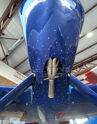 “為了改裝公司的首架參賽飛機,我們幾乎兩個月沒有休息。我們對試飛結果非常滿意,這時距離我們出發(fā)去參賽的日子還有三天時間。還剩最后一項任務:發(fā)動機罩底部開了一個很大的洞,用來安裝新的高性能排氣系統(tǒng)”,他說。