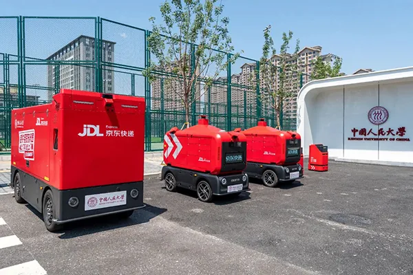在校園運(yùn)送包裹的京東物流第六代智能配送車