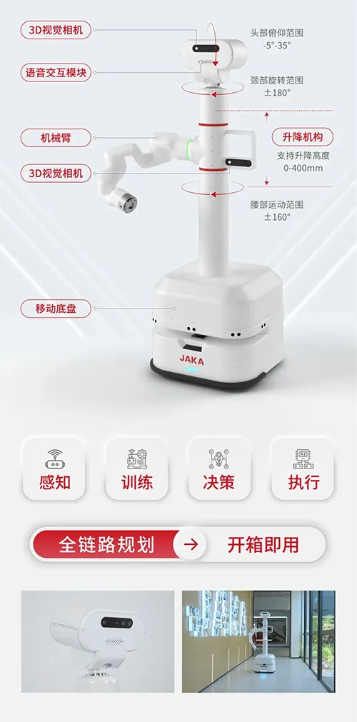 不同于由移動(dòng)底盤、相機(jī)、機(jī)械臂“攢”起來的具身智能平臺,JAKA Lumi平臺整機(jī)系統(tǒng)采用一體化設(shè)計(jì),軟硬件高度集成且完善,突破了實(shí)驗(yàn)室的界限,真正走入商超、酒店、學(xué)校、家庭的靈活作業(yè)場景,表現(xiàn)出快速部署、靈活作業(yè)、穩(wěn)定運(yùn)行、自然交互等顯著優(yōu)勢。