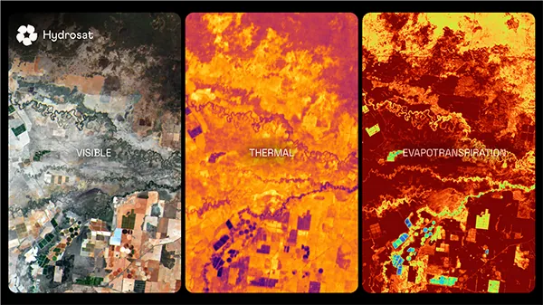 Hydrosat 衛(wèi)星的熱成像數(shù)據(jù)可以頻繁、可靠地提供分區(qū)域尺度的洞察,并可用于植被健康評估、灌溉優(yōu)化、農(nóng)業(yè)用水效率測算、干旱預(yù)警等領(lǐng)域,同時也能監(jiān)測工廠熱排放、夜間船舶和其他熱源識別、新建設(shè)施導(dǎo)致的毀林區(qū)域定位等商業(yè)與安防場景。