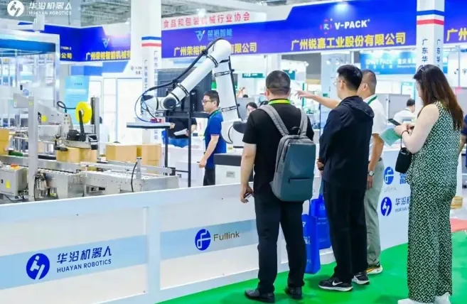 6月24-26日,上海國際食品加工與包裝機(jī)械展覽會(簡稱“上海國際食品包裝展”)在上海國家會展中心盛大舉辦,華沿機(jī)器人攜手包裝機(jī)械設(shè)備專家富爾菱共同展出一款基于華沿E10-Pro協(xié)作機(jī)器人及S30大負(fù)載機(jī)器人打造的智能裝箱及碼垛工作站(展位號:7.1館E80-4),實(shí)現(xiàn)全流程無人化作業(yè),為包裝行業(yè)提供高效、柔性的自動化解決方案。