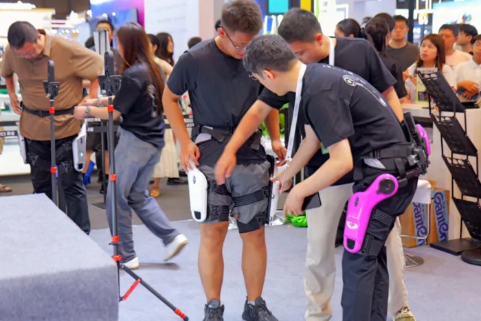 傲鯊智能的首款消費(fèi)級(jí)動(dòng)力外骨骼機(jī)器人成了 “運(yùn)動(dòng)達(dá)人”—— 它能支持最高 16km/h 的跑步速度,在動(dòng)態(tài)行走、靈活轉(zhuǎn)向等演示中,把動(dòng)力外骨骼的輕盈與爆發(fā)力展現(xiàn)得淋漓盡致。這種兼顧便攜性與運(yùn)動(dòng)性能的設(shè)計(jì),讓外骨骼從工業(yè)輔助向日常場(chǎng)景延伸有了新可能。
