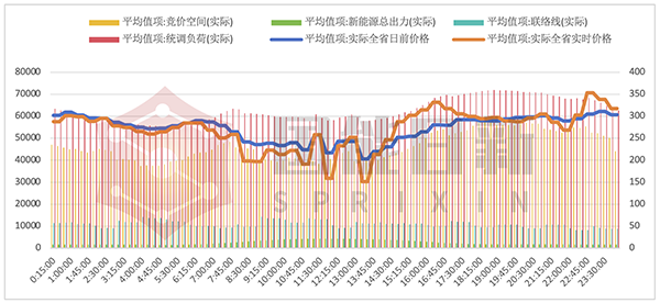 從分時(shí)角度看,1-7月現(xiàn)貨均價(jià)在150-400元/MWh之間,日前均價(jià)和實(shí)時(shí)均價(jià)呈現(xiàn)早晚高、午間低的價(jià)格走勢(shì)。并且實(shí)時(shí)價(jià)格大多數(shù)時(shí)段與日前貼合,早晚高峰價(jià)差相對(duì)較低,價(jià)差圍繞零小幅波動(dòng)。午間時(shí)段,隨著新能源光伏大發(fā),新能源出力平均可達(dá)到4000MW以上,同時(shí)午間負(fù)荷走低,導(dǎo)致現(xiàn)貨價(jià)格波動(dòng)加大,拉大日前和實(shí)時(shí)價(jià)差空間。