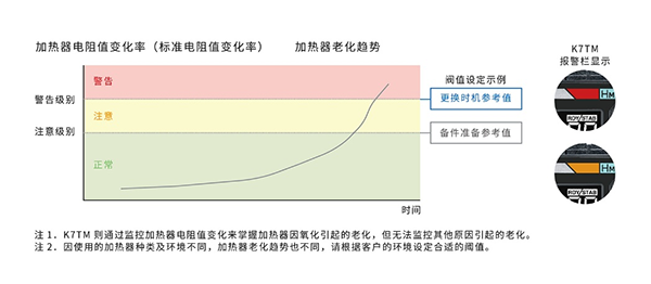 ■ 通過電阻值變化率捕捉老化趨勢,并依據(jù)加熱器斷線風(fēng)險(xiǎn)增大的變化率狀態(tài)設(shè)定閾值,無需依賴個人經(jīng)驗(yàn)。