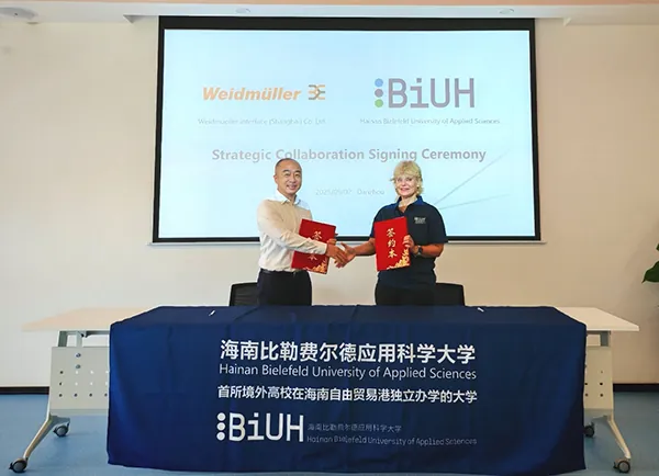 深化校企協(xié)同、推動產教融合是高素質復合型人才培養(yǎng)的核心路徑。擁有 175 年歷史的智能工業(yè)聯(lián)接專家魏德米勒,長期以合作育人踐行企業(yè)社會責任,與德國比勒費爾德應用科學大學(簡稱 “德國比科大”)有著深厚合作基礎并輸送大量應用型人才;而作為中國首個境外高校獨立辦學項目、德國比科大在華辦學標桿的海南比勒費爾德應用科學大學(簡稱 “海南比科大”),則成為雙方合作的新延伸,魏德米勒亦助力其 “實踐嵌入式” 人才培養(yǎng)模式在華落地。