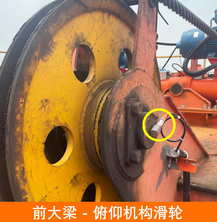 控制前大梁仰俯角度,適應(yīng)不同船型的作業(yè)需求,其鉸接點(diǎn)與鋼絲繩張力的平衡至關(guān)重要。