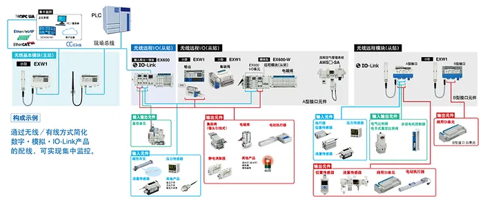 3) 無縫對(duì)接SMC無線通信系統(tǒng):基本模塊與遠(yuǎn)程模塊之間無需通信電纜,大幅節(jié)省配線工時(shí)、空間與成本,降低斷線風(fēng)險(xiǎn),最多可連接10臺(tái)遠(yuǎn)程模塊或小型無線遠(yuǎn)程模塊。
