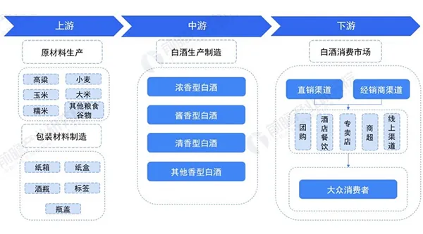 圖:白酒行業(yè)產(chǎn)業(yè)鏈結(jié)構(gòu)圖;圖源:前瞻產(chǎn)業(yè)研究院