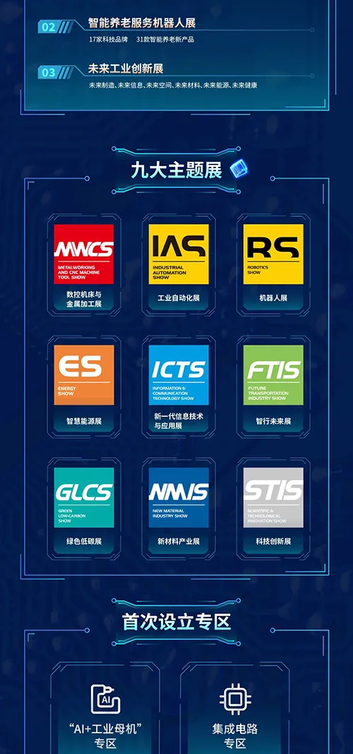 “1”是指一場高規(guī)格開幕式,9月23日開幕式上,將發(fā)布國家級產(chǎn)業(yè)政策及成果,知名專家院士及企業(yè)家代表將共話全球制造新未來,同時還將揭曉CIIF大獎。“3”是指我們首次設(shè)立了三大特展,分別是國家新型工業(yè)化暨“十四五”工業(yè)重大成就展、智能養(yǎng)老服務(wù)機(jī)器人展和未來工業(yè)創(chuàng)新展,其中智能養(yǎng)老服務(wù)機(jī)器人展,遴選工信部已公布的“智能養(yǎng)老服務(wù)機(jī)器人結(jié)對攻關(guān)與場景應(yīng)用試點(diǎn)項目公示名單”中的17家具有代表性的科技品牌,傅里葉、宣康、歸墟、鈞控等品牌將帶來31款智能養(yǎng)老機(jī)器人新產(chǎn)品,演繹“銀發(fā)經(jīng)濟(jì)”新生態(tài)。未來工業(yè)創(chuàng)新展重點(diǎn)圍繞未來制造、未來空間、未來信息、未來能源、未來健康、未來材料等領(lǐng)域的創(chuàng)新應(yīng)用,其中北京玻色量子推出的相干光量子計算機(jī)將首次亮相。“9”是指九大主題展,涵蓋數(shù)控機(jī)床、工業(yè)自動化、機(jī)器人、綠色低碳技術(shù)、工業(yè)互聯(lián)網(wǎng)、集成電路、工業(yè)軟件、智慧能源、智慧出行、新材料等重點(diǎn)領(lǐng)域,把九大主題展“串珠成鏈”,強(qiáng)化技術(shù)融合、拓展場景應(yīng)用與構(gòu)建全產(chǎn)業(yè)鏈的創(chuàng)新突破,為推動新型工業(yè)化提供全景展示,其中首次設(shè)立的主題專區(qū)包括“AI+工業(yè)母機(jī)展示專區(qū)”“集成電路展示專區(qū)”“核電技術(shù)展示專區(qū)”“創(chuàng)新孵化專區(qū)”等。其中,核電專區(qū)匯聚了中核集團(tuán)、中國華能、上海核工院、中廣核數(shù)科、中廣核清能、上海電氣等國內(nèi)核電頭部企業(yè),集中呈現(xiàn)核電裝備產(chǎn)業(yè)鏈“全家桶”,從三代技術(shù)到四代堆型及可控核聚變等核能發(fā)電及綜合利用的最新成果。除了展覽展示,本屆工博會強(qiáng)化“展、會、活動”一體化發(fā)展,打響“工博系列”高規(guī)格會議活動品牌, 打造了十余場高規(guī)格論壇活動同期舉辦,其中“中國自動駕駛產(chǎn)業(yè)創(chuàng)新與生態(tài)論壇”“第三屆上海集成電路產(chǎn)業(yè)發(fā)展國際高峰論壇”“AI在核能領(lǐng)域應(yīng)用國際研討會”等活動首次與工博會同期舉行,直擊產(chǎn)業(yè)焦點(diǎn)和前沿議題。展會現(xiàn)場,組織了百場專題活動,包括新品發(fā)布會、行業(yè)對接會、投融資主題會等,促進(jìn)產(chǎn)業(yè)對接與創(chuàng)新合作。
