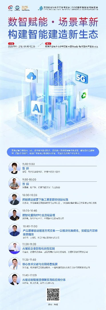 聚焦政策引領(lǐng)與 AI、5G、數(shù)字孿生技術(shù)融合,結(jié)合杭州本地實(shí)踐,解析綠色低碳轉(zhuǎn)型、國際協(xié)作路徑,聯(lián)動產(chǎn)業(yè)鏈資源推動協(xié)同創(chuàng)新,共筑智能建造產(chǎn)業(yè)新生態(tài)。