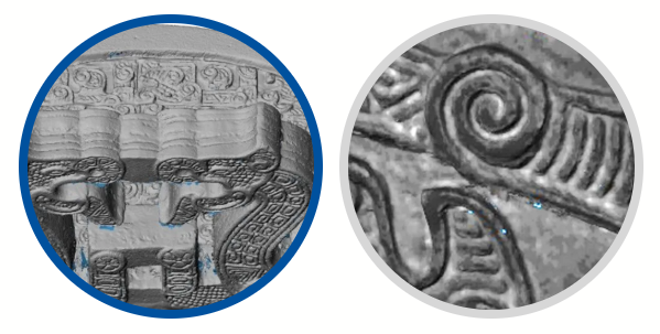 隨著3D掃描技術(shù)持續(xù)進步,文博領(lǐng)域數(shù)字化進程不斷加快。文物表面常存在復(fù)雜精細的紋理、銘文或細微損傷,傳統(tǒng)方法難以全面記錄,這給文物保護及研究工作帶來了很大的困難。??怂箍到Y(jié)構(gòu)光掃描儀具有最高2000萬像素,具有特征自動拼接能力,無需貼點或噴粉,以非接觸式測量方法獲取完整三維數(shù)據(jù),清晰還原文物材質(zhì)肌理與微小痕跡。