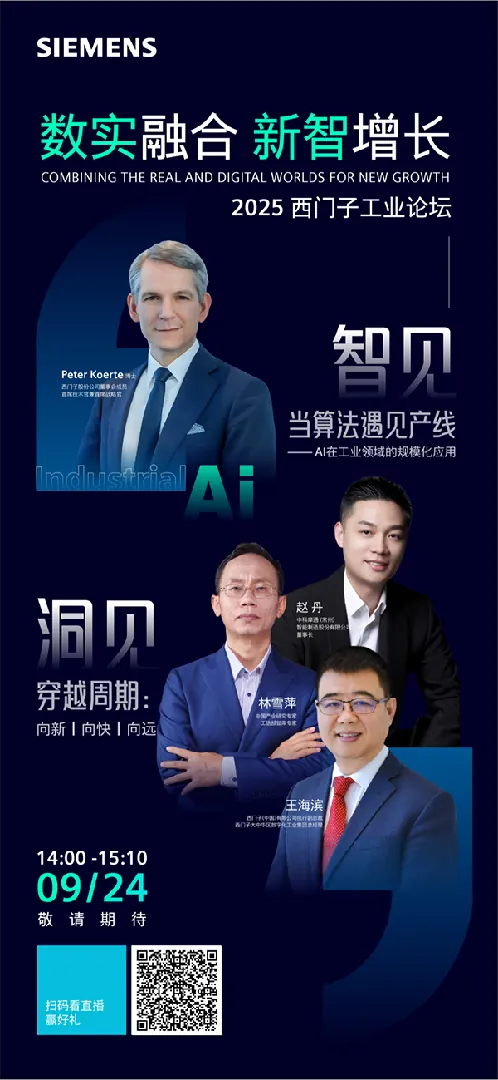 此外,工博會(huì)期間西門子的保留節(jié)目——西門子工業(yè)論壇也將如約而至。兩大重磅分享:“當(dāng)算法遇見產(chǎn)線 — AI在工業(yè)領(lǐng)域的規(guī)?;瘧?yīng)用”、“穿越周期:向新·向快·向遠(yuǎn)”,不容錯(cuò)過。