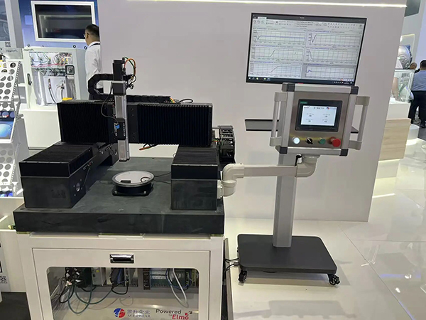 此外,Elmo還現(xiàn)場(chǎng)演示了搭載Platinum Maestro多軸運(yùn)動(dòng)控制器、Platinum String Quartet四軸驅(qū)動(dòng)器及Gold Oboe驅(qū)動(dòng)器的精密雙驅(qū)龍門系統(tǒng),通過(guò)高動(dòng)態(tài)響應(yīng)與飛拍等功能,全面呈現(xiàn)Elmo在多軸同步與高精度控制方面的系統(tǒng)解決能力。