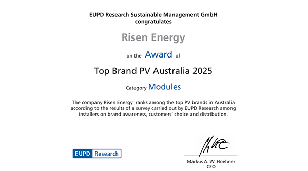 近日,全球知名市場研究機(jī)構(gòu)EUPD Research公布了2025年度“澳大利亞頂級光伏組件品牌”(Top Brand PV Modules Australia 2025)評選結(jié)果。東方日升憑借出色的產(chǎn)品品質(zhì)、持續(xù)的技術(shù)創(chuàng)新以及卓越的口碑,連續(xù)多年斬獲這一權(quán)威殊榮。