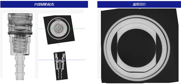 ZEISS METROTOM 800可以檢查內部尺寸量測解決快接頭內部尺寸的問題,且無需剖切,通過虛擬切片實現(xiàn)對快接頭整個內部結構的觀察。