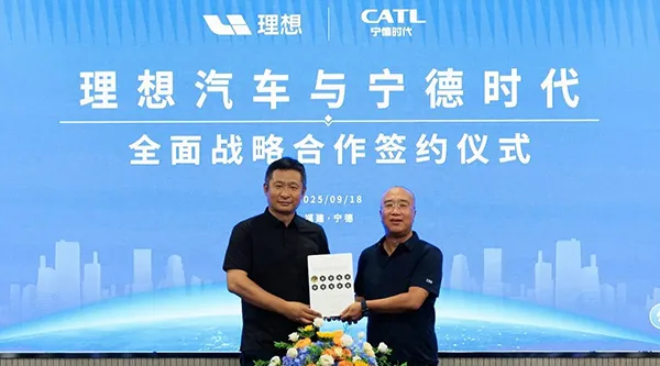 理想汽車與寧德時(shí)代達(dá)成全面戰(zhàn)略合作