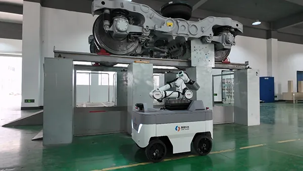 這款列車智檢機器人,最小通過寬度僅600毫米,可直接進入檢修股道,無需對現(xiàn)場進行土建改造。作業(yè)時,機器人自主定位導航、自動避障,從列車兩側(cè)同步檢測,將6編組列車 “車底+車側(cè)” 的巡檢時間從100分鐘壓縮至60分鐘內(nèi)。