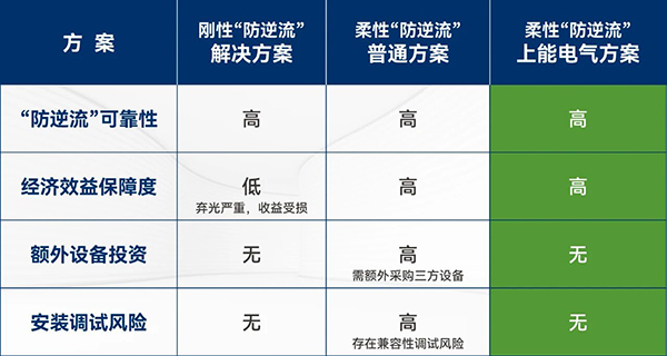 上能電氣柔性“防逆流”解決方案區(qū)別于傳統(tǒng)一刀切式的斷網(wǎng)式剛性“防逆流”功能,可以實(shí)時(shí)監(jiān)測(cè)負(fù)載需求,并在發(fā)電量過剩時(shí)精準(zhǔn)調(diào)節(jié)逆變器的輸出功率,使其始終與負(fù)載用電匹配。如同一位“智能指揮官”,上能電氣柔性“防逆流”解決方案既能嚴(yán)格遵守電網(wǎng)規(guī)定,又能極致利用每一度陽光,有效保障業(yè)主收益。