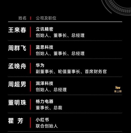 “2025福布斯中國杰出商界女性100”榜單(部分截圖)