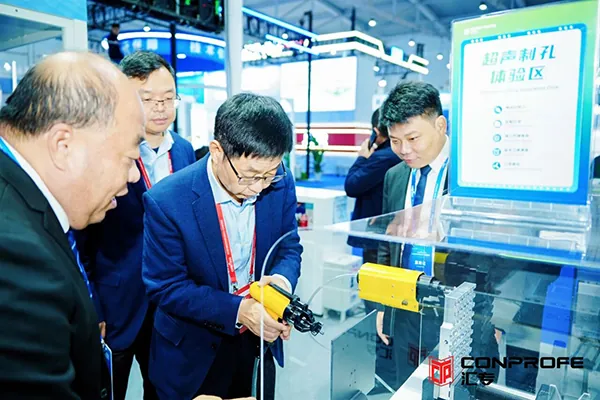 除展示創(chuàng)新產(chǎn)品外,匯專還設(shè)置雙超聲綠色系統(tǒng)展示區(qū)、三合一技術(shù)展示區(qū)、冷壓刀柄裝刀精度展示區(qū)、超聲振動體驗區(qū)、超聲制孔體驗區(qū)、超聲切割及超聲振幅測量儀體驗區(qū)等,全方位提供從靜態(tài)觀摩到動態(tài)體驗的互動空間,幫助現(xiàn)場觀眾深入了解匯專超聲技術(shù)的加工原理及其在不同應(yīng)用場景的加工優(yōu)勢。