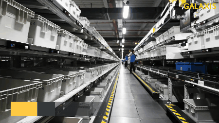 ● 高效存儲矩陣:73臺MSR料箱機器人(穿梭車)以5米/秒的速度在立體貨架間精準(zhǔn)穿梭,實現(xiàn)2100箱/小時的出入庫吞吐能力,支撐日均6.3萬箱貨物的高效流轉(zhuǎn)。