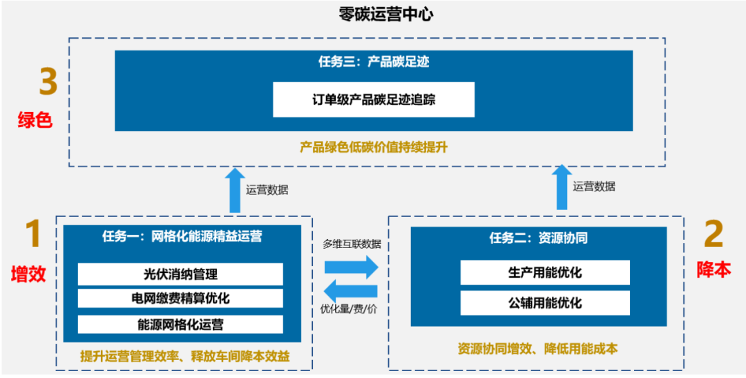 零碳運(yùn)營中心運(yùn)行后:通過網(wǎng)格技術(shù)實(shí)現(xiàn)全企業(yè)參與,釋放車間節(jié)能潛力;切近工藝挖掘可調(diào)資源,通過算法編排設(shè)備運(yùn)行策略,有效降低生產(chǎn)用能成本;多能耦合協(xié)同,“源-網(wǎng)-荷”全鏈條動(dòng)態(tài)優(yōu)化、智能調(diào)控;訂單級產(chǎn)品碳足跡追蹤填補(bǔ)行業(yè)空白;發(fā)揮了光伏綠電的最大化價(jià)值、提升了產(chǎn)品的綠色低碳屬性,綜合降本35.7%、降低產(chǎn)品碳排32%,打造了制造業(yè)能源協(xié)同增效的典型實(shí)踐。